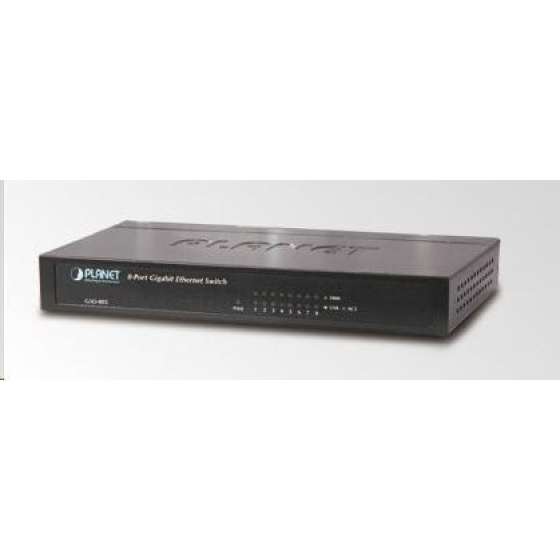 Popis Planet switch GSD-805 10/100/1000 (8x1000BASE-T), interní napájení, kov