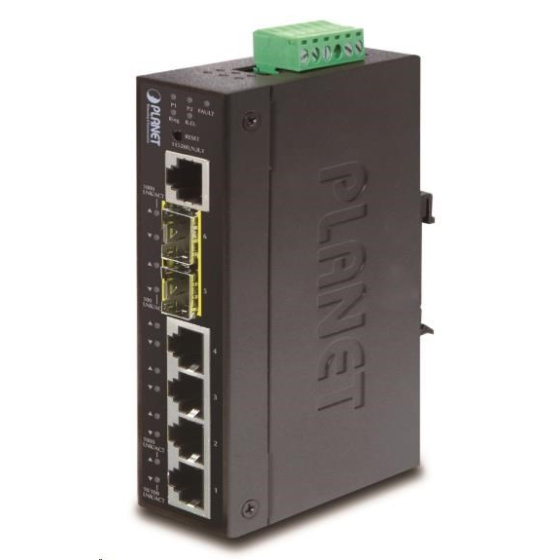 Popis Planet switch IGS-5225-4T2S, průmyslový 4x10/100/1000T, 2x100/1000X SFP, -40~+75°C