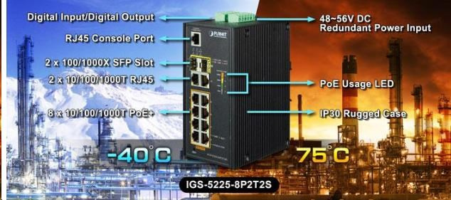 Porty: 8 x RJ-45 10/100/1000BASE-T PoE+, 2 x RJ-45 10/100/1000BASE-T, 2 x SFP 1000BASE-SX/BX, 1 x RJ-45 sériový port konzole