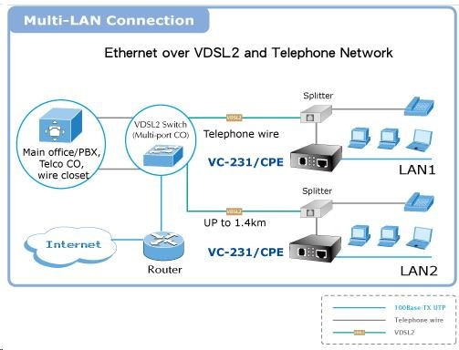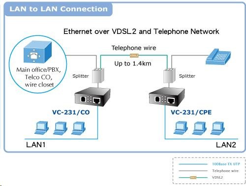 Popis Planet VC-231, Eth. VDSL2 konvertor, 100Mbit, master/slave, RJ-11