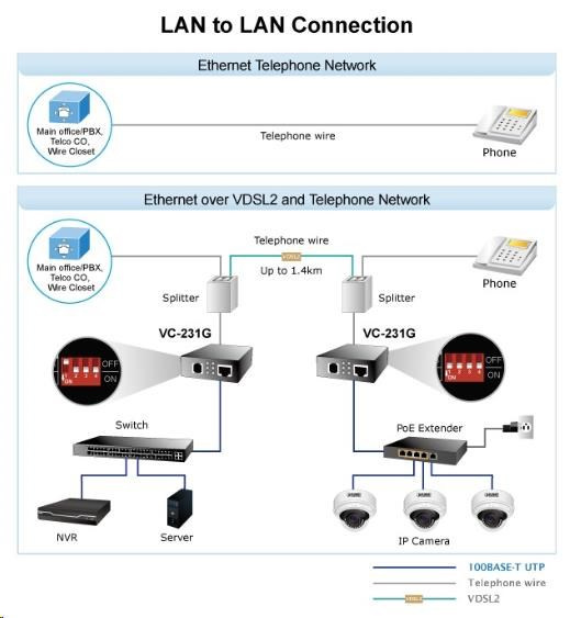 Popis Planet VC-231G, Eth. VDSL2 konvertor, 1000Base-T, master/slave, profil 30a, G.993.5 Vectoring, G.INP, RJ-11