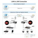 PLANET VC-231G Ethernet po telefonním vedení (technologie VDSL2). 1x LAN RJ-45, 1x VDSL2 RJ-11. Transparentní bridge. G.993.2 VDSL2, G.993.5 G.Vectoring + G.INP. Kapacitně 200/160Mbps na 200m. Dosah až 1,4km. Nastavení DIP přepínači, volitelně Master (CO) / Slave (CPE). Možný provoz na VDSL O2 lince. LRE (Long Reach Ethernet) konvertor ethernetu na VDSL2 (Very-high-data-rate Digital Subscriber Line 2) konvertor ethernetu dovoluje přenést data symetrickým párem vodičů rychlostí až 200Mbitů/s na 200m nebo 30Mbitů/s do vzdálenosti až 1,4km, přenosové rychlosti dle stavu a kvality použitého vedení. Zařízení je univerzální jako master (CO) / slave (CPE) jednotka, nastavení režimu přepínačem. Jednotka podporuje VDSL2 operační módy dle přenosových profilů "17a" a "30a", volbu dle "band Plan997" a G.993.5 G.Vectoring & G.INP postihující symetrický přenos dat vyšší rychlostí i na souběžném vedení. S pomocí externího spliteru lze zachovat hlasovou službu na telefonním vedení bez další úpravy zapojení. S výhodou tak lze využít telefonní kabelová vedení původně určená pro spojení nejen k účastníkům ale i mezi analogovými ústřednami. ISP (internet service provider) poskytovatelům je tak umožněno nabízet multimediální služby, VOD (video on demand), VoIP (voice over IP), Video phone, IPTV, apod. Aplikace VDSL2 s pokročilým G.INP a G.Vectoringem lze provozovat i v rámci aktivních prvků rozhraním SFP diky modulu XL-MGB-VDSL2-R2 (viz. doporučené příslušenství). Modem lze úspěšně provozovat nad VDSL linkami O2. ZÁKLADNÍ SPECIFIKACE Porty: 1 x 10/1000Base-T, RJ-45 1 x VDSL, RJ-11 Podpora přenosu: JumboFrame 2K MAC adres Soulad s normami: IEEE 802.3, IEEE 802.3u, IEEE 802.3ab, IEEE 802.3x, IEEE 802.3p Transparentní pro: IEEE 802.1Q VLAN tag Standard: ITU-T: G.993.1 - VDSL, G.997.1, G.993.2 - VDSL2 (profily 17a/30a), G.993.5 G. - Vectoring a G.INP, G.998 DIP přepínání: volba CPE/CO, volba modulace, volba komunikačního limitu, volba SNR Napájení: z externího adaptéru, 5V/2A Provozní teplota: 0 až 50°C, vlhkost <90% Rozměry: 97 x 70 x 26 mm Hmotnost: 184 g Lze instalovat do šasí: MC-700, MC-1500, MC-1500R Příklad dosahů a rychlostí (down/up Mb/s) na vedení s vodiči AWG24 a lepších: 200m -> 225.34Mb/122.39Mb 400m -> 151.89Mb/78.78Mb 600m -> 90.42Mb/49.93Mb 800m -> 57.70Mb/29.87Mb 1000m -> 45.33Mb/9.21Mb 1400m -> 34.74Mb/5.75Mb Nastavení pro O2 VDSL připojení modem v režimu CPE; další DIP přepínače Transmision, Band, SNR podle kvality linky v routeru na WAN rozhraní aplikovat VLAN ID:848 nad WAN nastavit PPPoE klienta, Login: O2/O2 dále věnujte pozornost nastavení vašeho routeru, jeho firewallu, přístupových práv, UPnP, atd..
