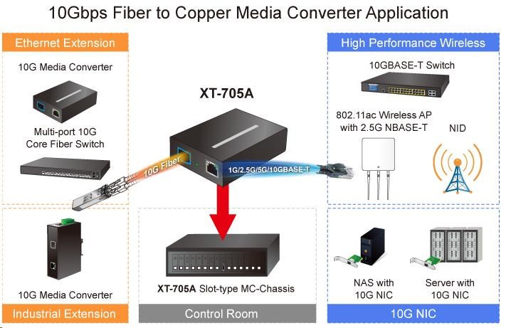 Popis Planet XT-705A, konvertor 10G/5G/2.5G/1G/100M / miniGBIC SFP+ 10GBASE-X