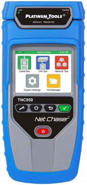 Net Chaser, TNC950-AR je validační přístroj pro datové sítě, používající Bit Error Rate Test (BERT), Signal to Noise Ratio (SNR) a SKEW pro zajištění správné průchodnosti sítě. Identifikuje chyby v kabelu (špatné zapojení, přehozené páry, vzdálenost k nezakončenému kabelu, zkratům a chybám s velkým odporem. Testy mohou být uloženy jako PDF nebo CSV soubory pro lehkou dokumentaci.