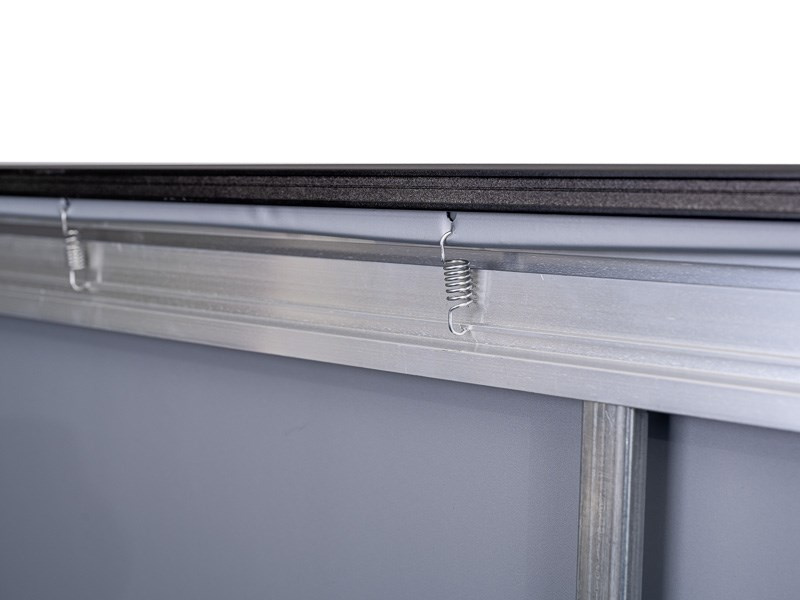 Rám plátna je potažen černým semišem pro pohlcení okolního světla a vyniknutí barev projekce.