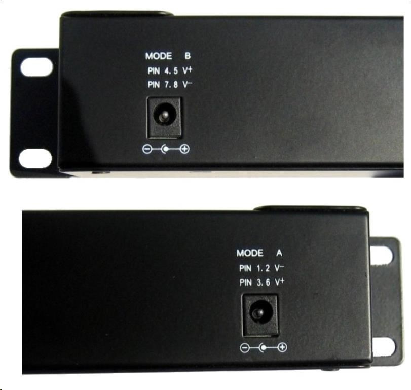 | Napájecí páry: | Režim A) 4/5+ & 7/8- (48V) Režim B) 1/2- & 3/6+ (48V) |