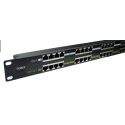 Panel integrující 16 pasivních POE injektorů vhodný pro napájení až šestnácti zařízení.