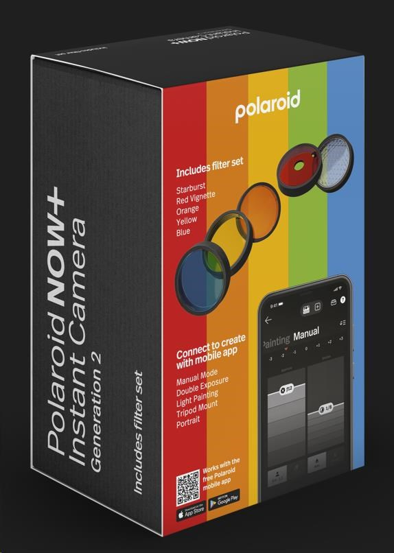 Polaroid Now Gen2 je k dispozici ve 4 zářivých barvách včetně černé, černobílé, červené a modré. Součástí balení je řemínek na zápěstí a nabíjecí USB kabel.