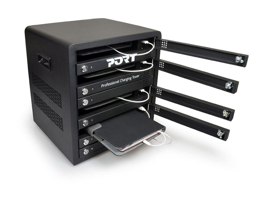 Originální napájecí skřínka s funkcí dobíjení a individuálních zámků pro každé zařízení zvlášt.