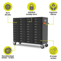 Nabíjecí skříň se 40 jednotkami, pro každou jednutku vlastní uzamykatelná dvířka.