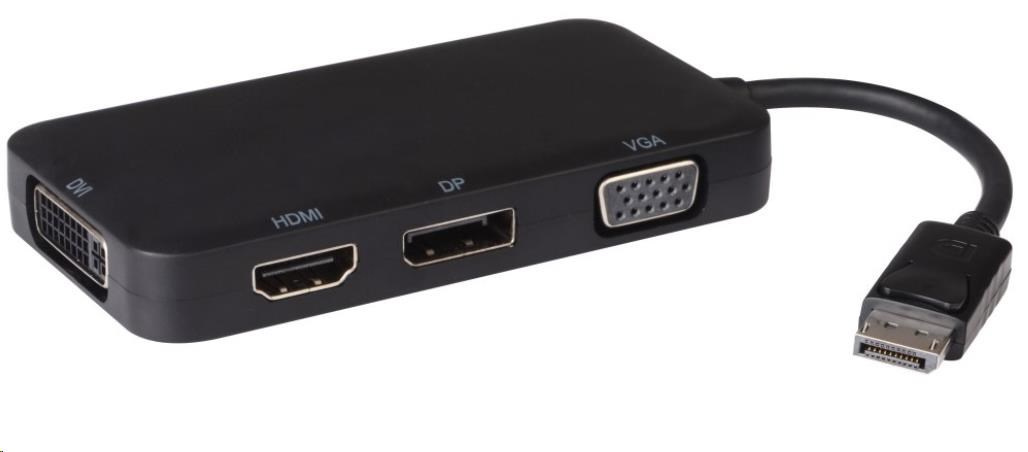Akční nabídky na váš e-mailTento adaptér umožňuje propojit DisplayPort výstup s HDMI, DisplayPort, DVI nebo VGA vstupem na LCD nebo televizi