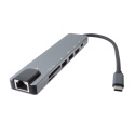 - Víceportový adaptér USB-C obsahuje vysokorychlostní port Ethernet / RJ-45, nabíjecí port 87 W PD, porty USB 3.0 a USB2.0, video výstup 4K HDMI + čtečka karet Micro SD a TF 2.0
