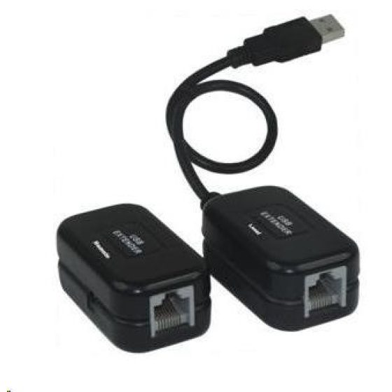 USB prodlužovací extender na kabel s RJ-45 do 60m - USB 1.1 - Prodloužení až na 60m - Vedení po standardním kabelu RJ-45 8žil ethernet - Není třeba napájení, napájeno ze sběrnice USB - Skládá se ze dvou částí: vysílače a přijímače, které se navzájem propojí kabelem s konektory RJ-45 - Nesmí se zapojovat do aktivní počítačové sítě - ethernet, s aktivními prvky jako jsou switche a routery. - Aten kód: 2X-UCE50 - Podpora systémů Windows/Mac. - Řešení pro spojení USB na dlouhou vzdálenost - Elegantní řešení pro natažení dlouhého kabelu USB třeba mezi několika místnostmi.