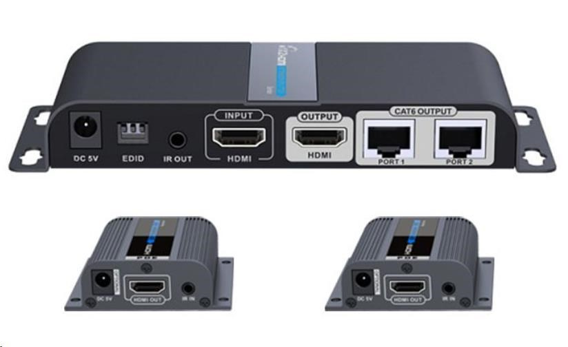 - Výstupy: 1x lokální výstup HDMI a vysílači, 2 x HDMI výstupy (Type A) na přijímačích