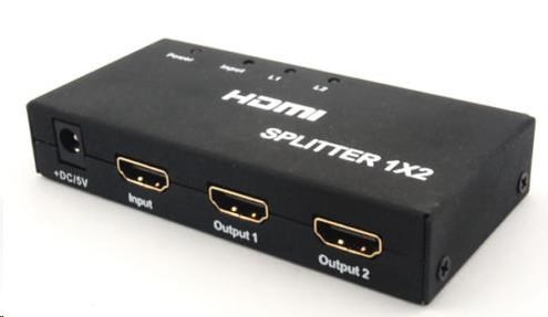 HDMI Video Splitter 1 => 2 portů s externím napájecím zdrojem, HDMI 1.4a kompatibilní max. rozlišení 1080i a 1080p.