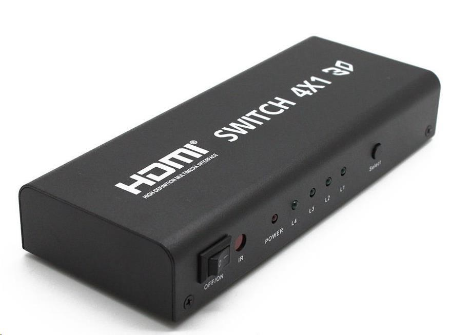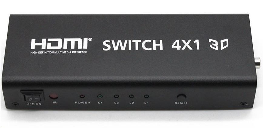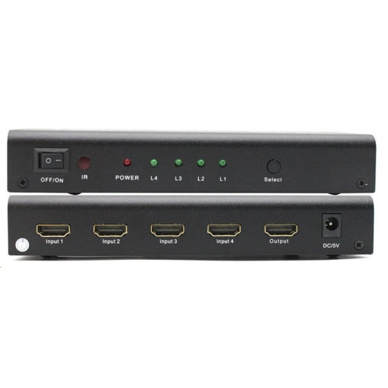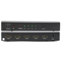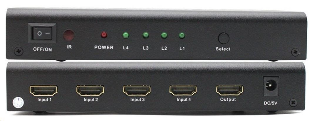 4 HDMI zařízení sdílí 1 HDMI výstupní zařízení (obrazovku). Výběr zařízení tlačítkem nebo dálkovým ovládáním.Audio výstup pro zesilovač nebo audio systém.