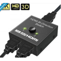 - Obousměrný 2x1 / 1x2 Přepínač HDMI lze použít dvěma různými způsoby: připojit 2 vstupní zdroje s 1 výstupním displejem nebo 1 vstupní zdroj se 2 displeji (funguje pouze na 1 obrazovce, nikoli současně).