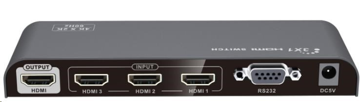3 HDMI zařízení sdílí 1 HDMI výstupní zařízení (obrazovku). Výběr zařízení tlačítkem nebo dálkovým ovládáním.