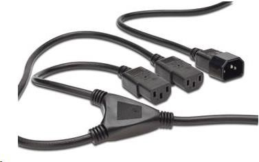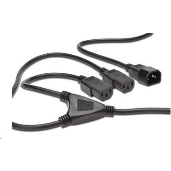 PremiumCord Kabel síťový 230V, Y-kabel prodlužovací M-2x F Prodlužovací napájecí kabel k monitoru nebo počítači nebo k připojení napájení monitoru do počítače - zároveň slouží jako rozdvojka 230V kabelu. Standardní přístrojová zásuvka-zástrčka, třížilový. Parametry a specifikace: Průřez všech vodičů: 3x0,75mm2 Proudové zatížení kabelu se zástrčkou: max 10A Součet proudů dvou kabelů se zásuvkou: max 10A Napětí max.: 250V Barevné provedení: Černé Délka kabelu se zástrčkou (male) do rozdvojení: 120cm Délka kabelu od rozdvojení do 1. zásuvky (female) : 50cm Délka kabelu od rozdvojení do 2. zásuvky (female) : 30cm.