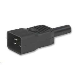 Konektor síťový 230V Male (samec) - šroubovací (nelisovaný) - IEC60320, C20 počítačový napájecí konektor 230V - 3 piny - maximální proud 16A - plastové provedení s kovovou vložkou - 12.5 mm maximální průměr kabelu.