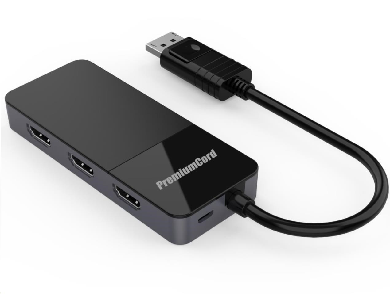 Akční nabídky na váš e-mailPremiumCord MST adapter DisplayPort 1.4 na 3x HDMI2.0 monitory 4K@60Hz, extended + mirror + duplicate režimy