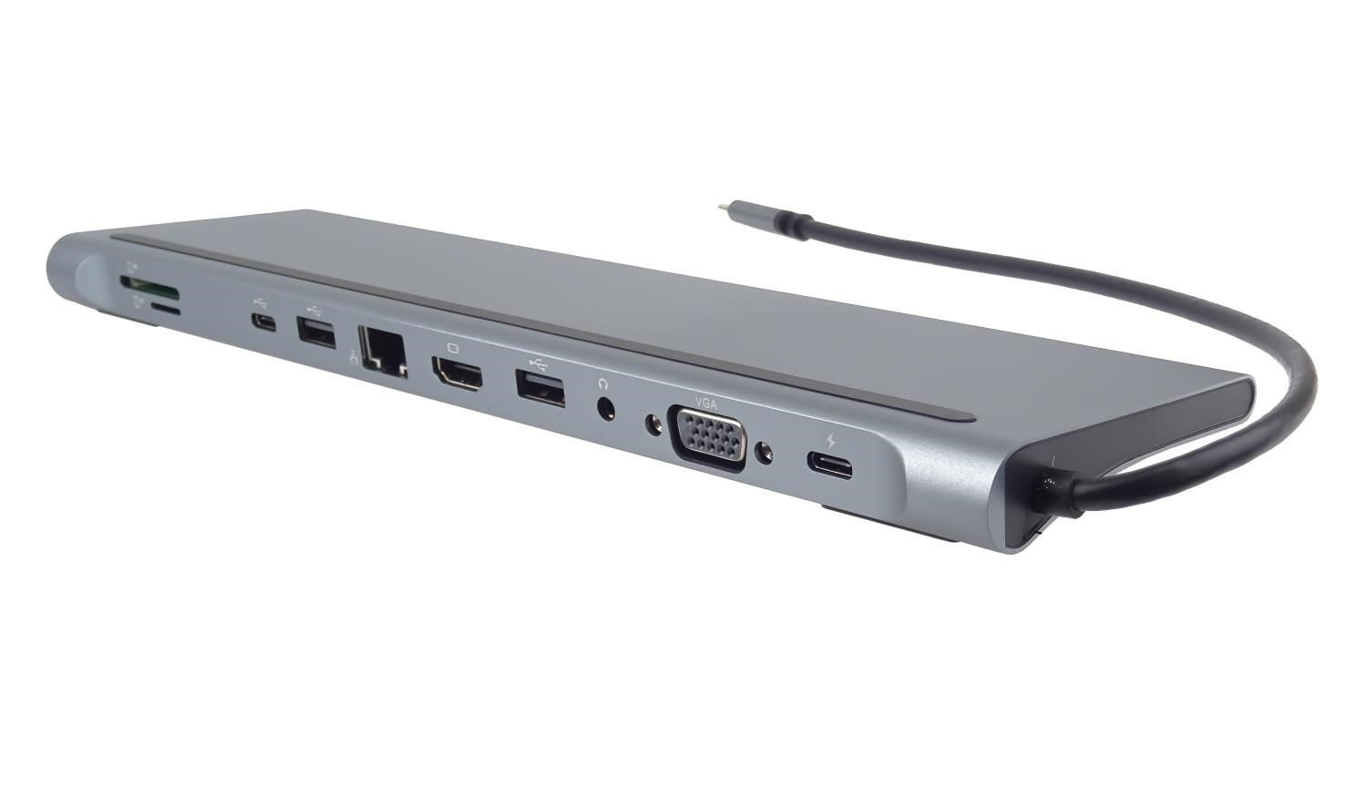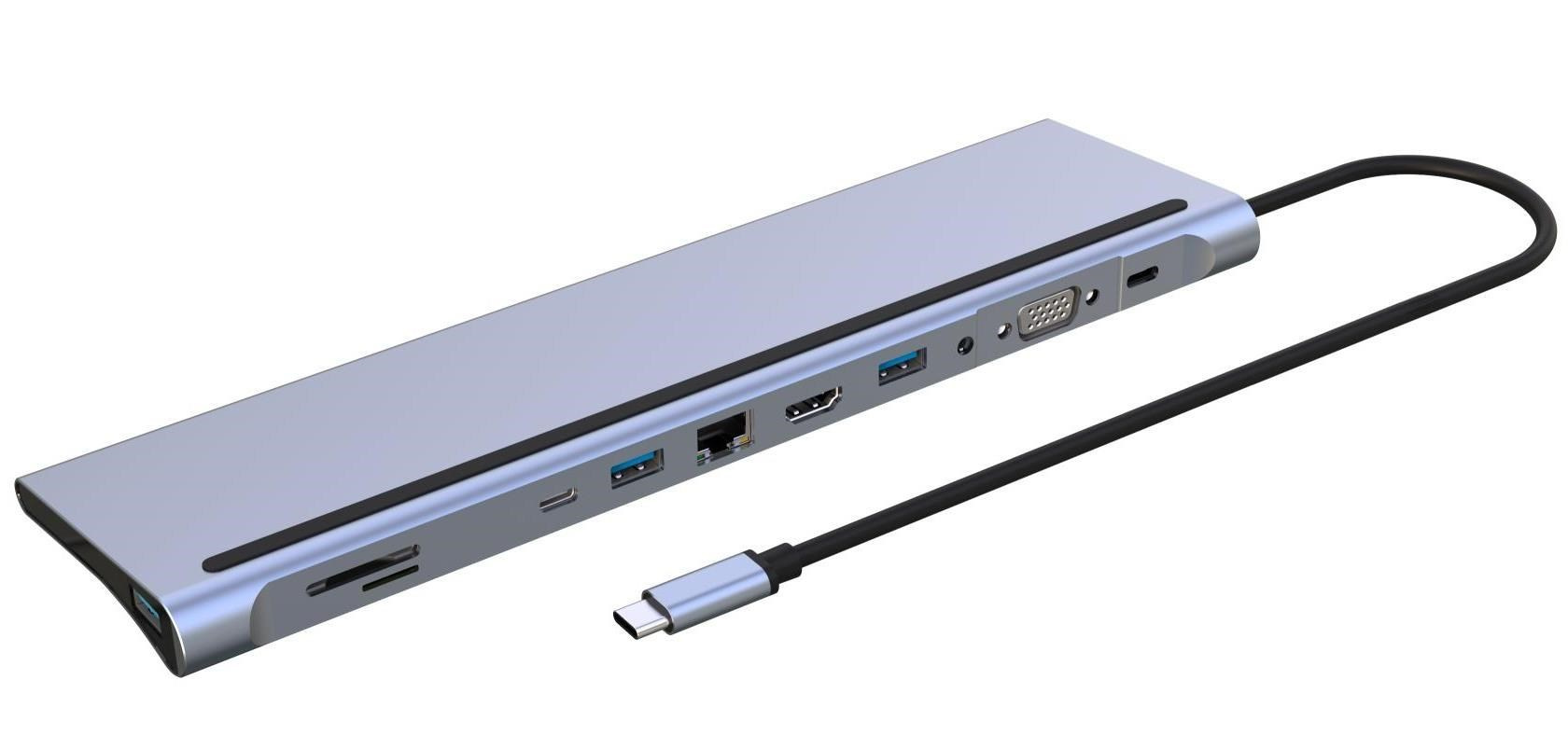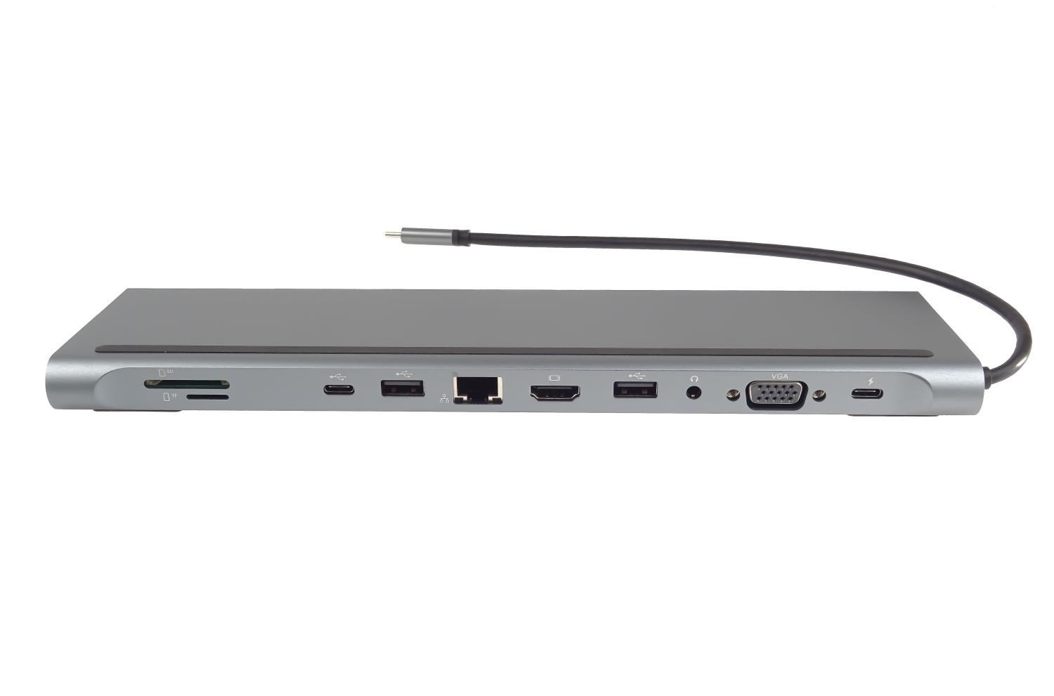 - Výstupní konektor: HDMI female + USB3.0 female + USB2.0 female + PD (power delivery) + čtečka karet SD/TF + RJ45 konektor na ethernet 10/100Mbps