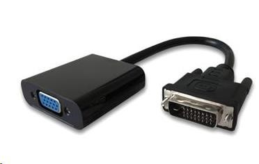 Převodník DVI na VGA s krátkým kabelem - černý - Vstup: DVI konektor - male - Výstup: VGA konektor DB15 - female - Převodník umožňuje propojit zařízení s výstupním signálem DVI na zobrazovací zařízení nebo TV, monitor s VGA konektorem - Technologie Plug and play; - Podporuje rozlišení: 480i/576i / 480p / 576p / 720p/1080i / 1080p / 60Hz; VGA výstup: 480i/576i / 480p / 576p / 720p/1080i / 1080p / 60Hz - Podporuje FULL HD 1080P (1920*1080P@60Hz) - Adaptér je určen pro počítače nebo notebooky s výstupem DVI, pro převod obrazu na analogové VGA. - Délka kabelu 25cm - Barva: černá.