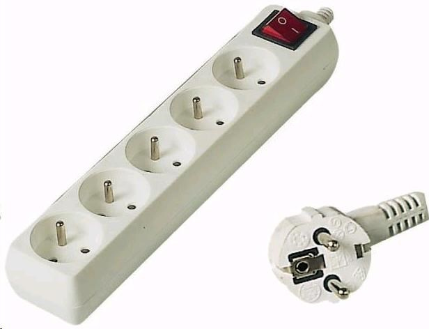 PREMIUMCORD Prodlužovací přívod 230V 10m, 5 zásuvek + vypínač, bílá
