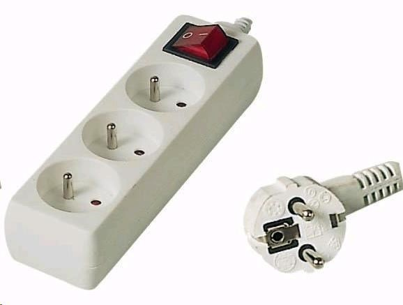 PREMIUMCORD Prodlužovací přívod 230V 5m, 3 zásuvky + vypínač, bílá