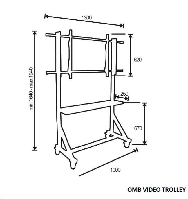 Popis Profesionální vozík/stojan držák na televizory 55-100", pojezdová kolečka s brzdou, OMB VIDEO TROLLEY