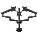 Profesionální stolní držák na 3 monitory Fiber Mounts M8C11 Plně nastavitelný kancelářský držák pro zavěšení tří monitorů 15-29", profesionální provedení, VESA 75x75 a 100x100, nosnost 21kg Profesionální systém pro uchycení a plnohodnotné polohování tří monitorů - otáčení do stran, náklon, délkové nastavení, rotace obrazovek. Držák podporuje VESA standardy 75x75 a 100x100. Maximální hmotnost monitoru 7kg (celková 21kg). Držák splní nároky každého uživatele. Profesionální stolní držák do kanceláře na 3 monitory Fiber Mounts M8C11 Technické údaje: celková nosnost 21kg (3 x 7kg) podpora VESA standardu 75x75 a 100x100 doporučená úhlopříčka monitorů 15" až 29" výškové polohování každého ramene 225mm až 575mm rotace obrazovek - možnost nezávislého otočení každého monitoru na šířku nebo na výšku nastavení vzdálenosti krajních monitorů možnost nastavení monitorů do příčky nebo do paraboly uchycení na stolové desky o průměru 10mm až 50mm stolový úchyt má integrované přípojky USB 3.0 systém vedení kabeláže materiál hliník a ocel barevné provedení černé záruka 5 let Stolní držák na 3 monitory Fiber Mounts M8C11 Držák na 3 monitory M8C11 podporuje VESA standardy: VESA 75x75 VESA 100x100 Profesionální držák na tři monitory s plnohodnotným polohováním. Držák je vhodný do kanceláří, pracoven, firem ale i domácnosti..
