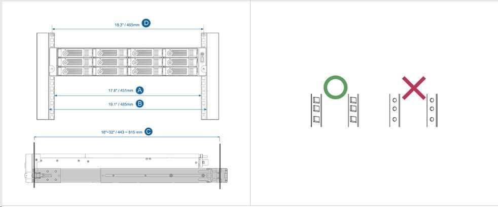 Akční nabídky na váš e-mailSady kolejnic QNAP Rail Kits pomáhají při instalaci QNAP NAS do racku. Posuvné kolejnice umožňují zasunutí QNAP NAS dovnitř a vysunutí ven pro snadnou údržbu a správu. Modely QNAP NAS určené do racku vyhovují standardům rackové montáže ANSI/EIA-RS-310-D. Než nakoupíte serverový rack, nejprve se prosím ujistěte, zda tento serverové rack odpovídá příslušným specifikacím.