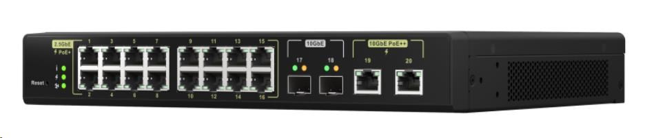 | Výstupní výkon PoE | Porty 1-16 (30 W), porty 19-20 (90 W) |