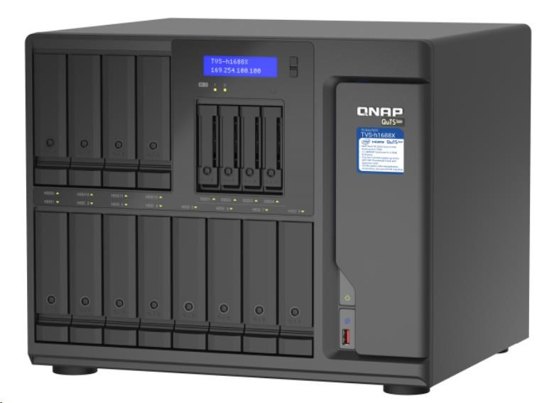 Akční nabídky na váš e-mailVysokokapacitní zařízení TVS-h1688X je vybaveno výkonným procesorem Intel® Xeon® W a umožňuje instalaci dvou QNAP rozšiřujících karet QXP-T32P Thunderbolt™ 3 PCIe (prodávají se samostatně) k získání čtyř portů Thunderbolt™ 3, což z něj dělá perfektní doplněk pro uživatele Mac® a Windows® vybavené Thunderbolt™ pro vysokorychlostní spolupráci při zpracovávání médií. Integrované připojení 10GbE a 2,5GbE podporuje slučování portů a failover, aby dále vyhověly podnikovým aplikacím náročným na šířku pásma a spolehlivost. Zařízení TVS-h1688X využívá operační systém QuTS hero na bázi ZFS a podporuje blokovou inline deduplikaci a kompresi dat, téměř neomezený počet snímků, SnapSync v reálném čase a technologii ZFS cache pro čtení/zápis, což pomáhá vašemu podniku dosáhnout výkonu spolehlivosti na úrovni dohody o poskytování služeb, od kreativních pracovních toků po souborový server, virtualizační server a efektivní aplikace pro zálohování a obnovu souborů.
