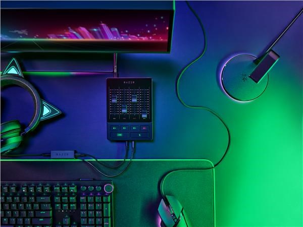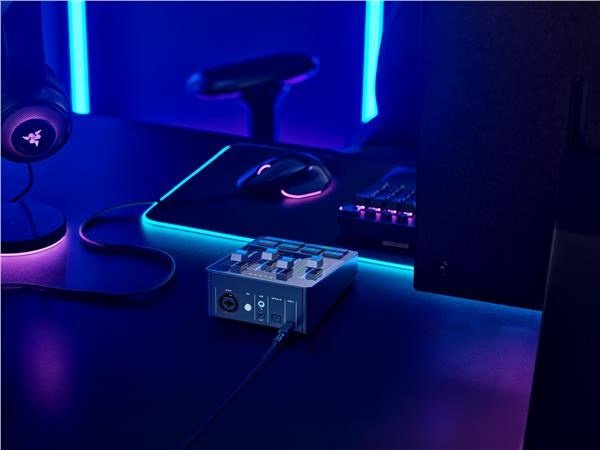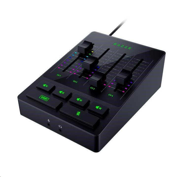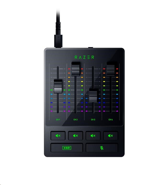 | Hardware Control Features | 4 x Channel Volume Slide Faders, 4 x Channel Mute Buttons, 1 x Microphone Mute Button, 1 x Bleep Button, 1 x 48V Phantom Power Button |