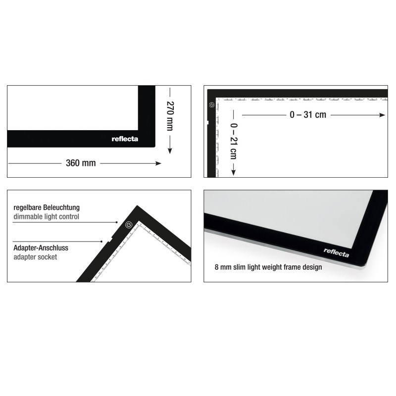Popis Reflecta LightPad A4+ LED prosvětlovací panel
