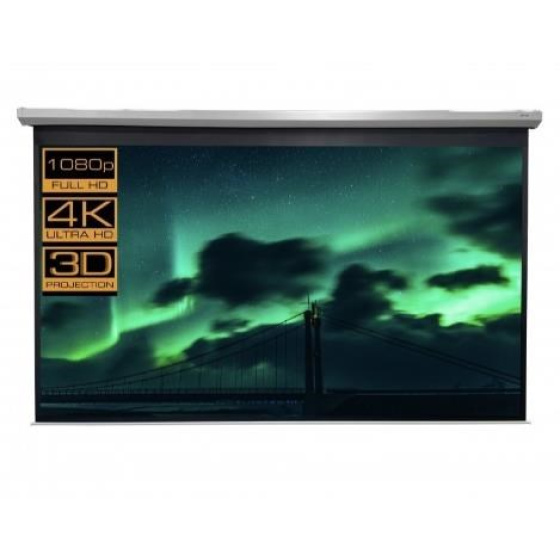 RC motorové plátno MOTOR CrystalLine 350x295cm, viditelná plocha 4:3, 167"/425, 340x255cm, bílý hranatý kovový tubus 15x365cm/40kg, uchycení na stěnu nebo strop, materiál BetaLux - bílá 0,52 tkanina 600g/m2 s 5cm černým okrajem a zadní stranou, Gain=1,0, pozorovací úhel 150°. Lux - bílý matný povrch pro maximálně věrný a kontrastní obraz při alespoň částečném zatemnění. PVC materiál s textilním základem vytváří rovnou plochu bez zvlnění ale v krajích může docházet k prohnutí - postupně mizí. Snadné uchycení na bocích plátna - stěna nebo strop. Přívodní elektrický kabel je na levé straně tubusu (při pohledu na upevněné plátno). Součástí dodávky je RC dálkový ovladač. Krabička RC přijímače (lze připevnit na stěnu) je na přívodním síťovém kabelu a na jejím boku jsou další možná tlačítka pro ovládání plátna..