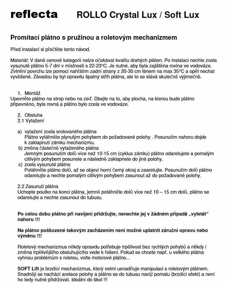 Reflecta SOFTLIFT Crystal 200x159cm (4:3, 97"/245cm, 196x147cm) plátno roletové