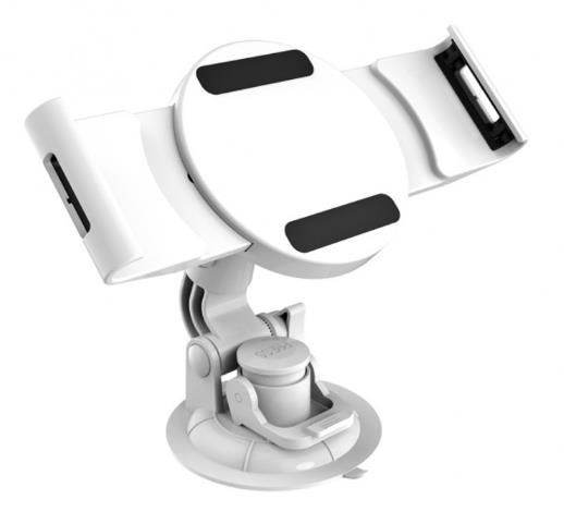 Držák pro tablety 7-11" v horizontální i vertikální poloze do auta na přední sklo. Přísavný adapter na sklo s kulovou hlavou pro volné nastavení, otočný o 360°, fixace ze dvou stran, plastové provedení, bílý..