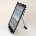 Stojánek pro tablety 7-11" v horizontální i vertikální poloze na stůl. Plynule nastavitelný sklon, výklopný mechanizmus pro rychlou instalaci, robustní kombinace hliníku a černého plastu, skladný pro transport, opření tabletu na spodní hraně, sříbrný / černý..