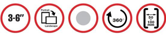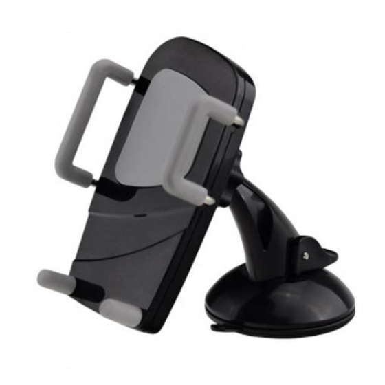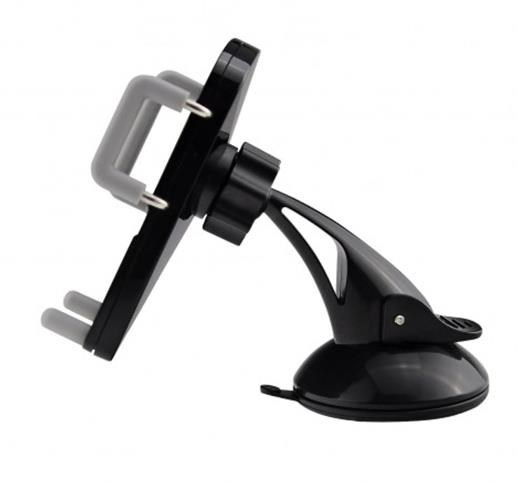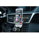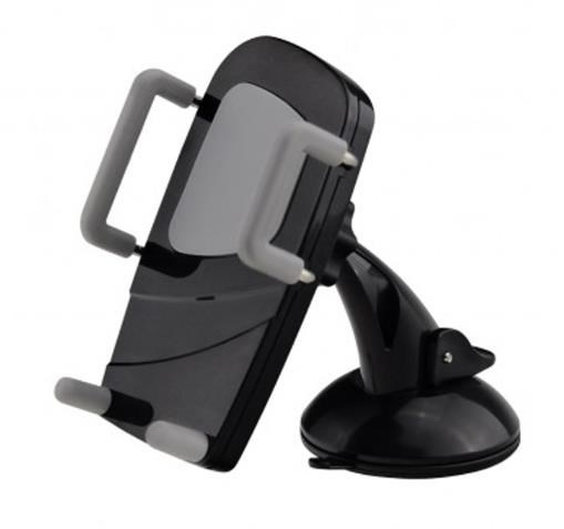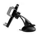 Stojánek pro chytré dotykové telefony 3-6" v horizontální i vertikální poloze do auta. Přísavný adapter na sklo a hladkou palubní desku s kulovou hlavou pro volné nastavení, uchycení do výdechu vzduchtechniky, fixace ze tří stran, plastové provedení, černý..