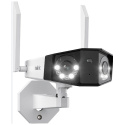 Tato kamera je vybavena dvěma objektivy a poskytuje vám široké zorné pole 150°* s menším zkreslením pro ochranu vaší rodiny. Současným ovládáním dvou displejů máte vše pod kontrolou bez slepých míst.
