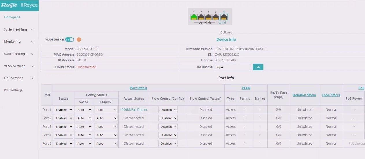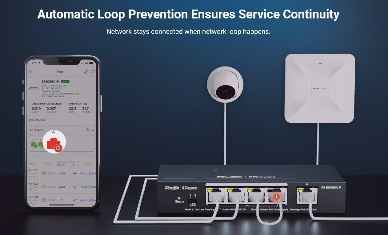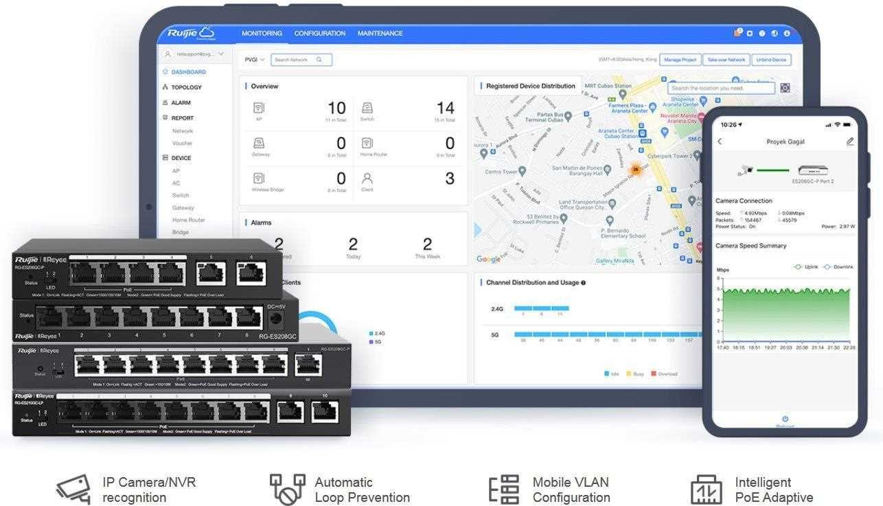Popis Reyee RG-ES206GC-P Smart mananged PoE switch, 4x PoE