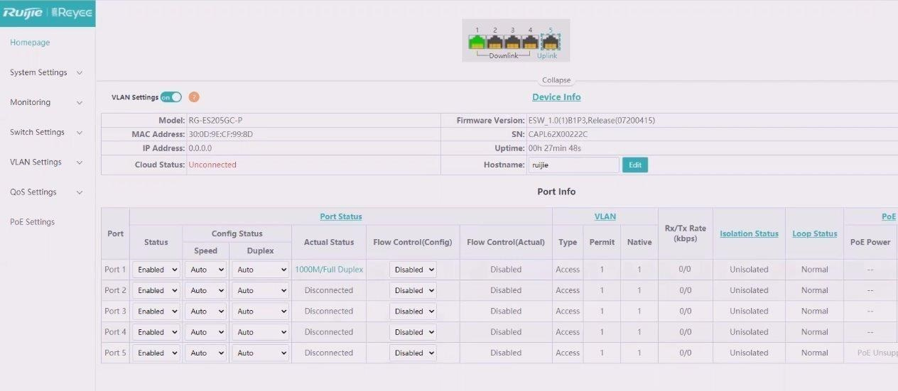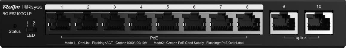 Popis Reyee RG-ES210GC-LP Smart mananged PoE switch, 8x PoE