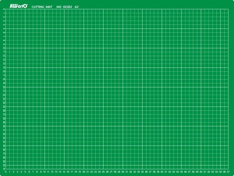 Řezací podložka pro formát A2. Rozměry 45×60 cm. Slouží jako pevný podklad pro řezání odlamovacím nebo rotačním nožem. Podložka o tloušťce 3 mm je vyrobena ze tří vrstev materiálu, má tuhé neproříznutelné jádro. Po projetí nože se se její povrch opětovně „zacelí“. Měkká povrchová vrstva podložky zároveň chrání ostrost nože. Provedení zelená, s antireflexním matným povrchem, tisk základním rastrem s měřítkem. Je vhodná také jako podložka pod počítačovou myš, nebo podložka pro razítkování..
