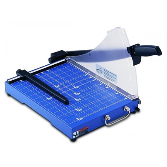 Páková řezačka na papír pro formát A4 (do 310 mm délky řezu) vhodná pro použití v kanceláři. Provedení s pevnou celokovovou základnou a posuvným dorazem. Je vybavena bezpečnostním krytem nože z odolného plastu, možností aretovat nůž ve spodní poloze. Základna řezačky má kovový úchop pro snadnou manipulaci. Max. tloušťka řezu 20 listů 80g papíru, ruční přítlak. Rozměry kovové základové desky 350×255 mm. Na desce jsou naznačeny formáty A4-A6. Rozměry: 385×405×410 mm, hmotnost: 2,7 kg.