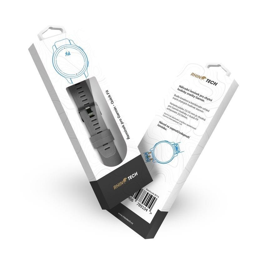 Popis RhinoTech řemínek pro Garmin QuickFit sportovní silikonový 22mm šedý