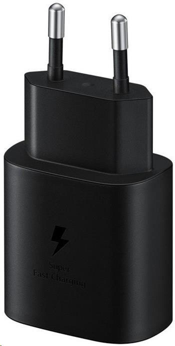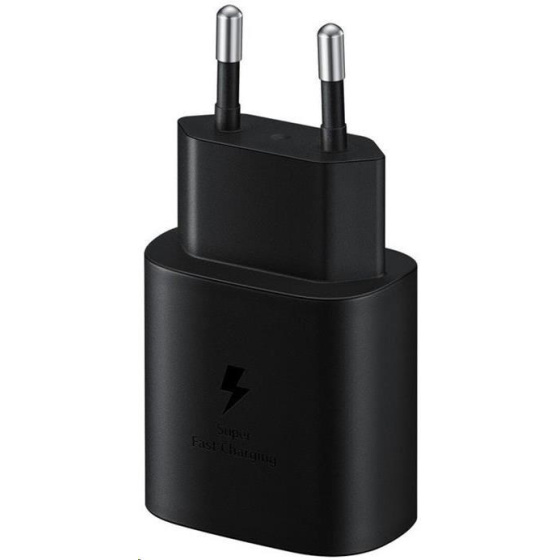 Samsung cestovní nabíječka do sítě s USB-C výstupem, maximálním výkonem 25W a USB-C datový kabel.