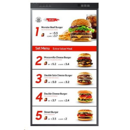 Úhlopříčka obrazovky ("):55"; Technologie TV:LED; Rozlišení:Full HD 1920x1080; Rozhraní:VGA, Komponentní, LAN, DVI; Formát obrazovky:16:9; Svítivost (nit):4000; VESA:600 x 400; Doba provozu:24/7.