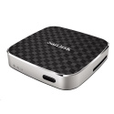 - multimediální bezdrátový disk je přenosní zařízení na streamování filmů s vysokým rozlišením, fotografií a hudby na tabletech, smartphonech a počítačích - obsahuje slot na karty SDHC/SDXC pro rozšíření paměti - až 8 hodin nepřetržitého streamingu na jedno nabití - odolné hliníkové tělo s protiskluzovou pogumovanou spodní částí - disk lze připojit až k 8 mobilním zařízení najednou a dokáže streamovat pět různých filmů v HD kvalitě současně - kompatibilní s iPad, iPhone, iPod touch, Kindle Fire a Android zařízeními - možná ochrana Wifi heslem (WPA2) - kapacita 32 a 64 GB - dodává se s USB kabelem nebo adaptérem pro dobíjení - disk vyžaduje zapojení přes port USB 2.0 a vyšší, pro mobilní zařízení iOS verze 6.0 nebo vyšší, pro Android verze 2.3 nebo vyšší, pro iOS verze 8.0 čtěte info na //kb.sandisk.com/app/answers/detail/a_id/16668/kw/itunes. Pro wifi technologie je vyžadován webový prohlížeč. Pro počítače a Mac počítače je požadován systém Windows 8 a Windows 7, Windows Vista, Windows XP nebo Mac OS 10.6 nebo vyšší. - pro rychlejší přístup lze stáhnout SanDisk Wirelles Media app - rozměry: 65 mm x 65 mm x 13.5 mm.